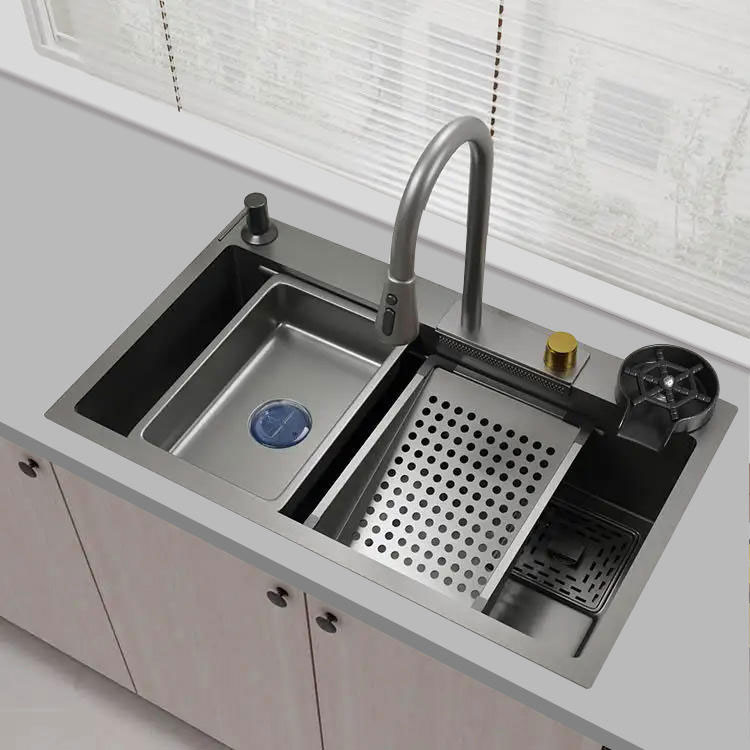 Stáisiún Oibre Comhtháite: Téann ár doirteal cistine thar an ngnáth, le stáisiún oibre comhtháite a fheidhmíonn mar spás ilúsáideach le haghaidh tascanna cistine éagsúla. Ó chopping agus prepping go miasa a thriomú, tá sé deartha chun do shreabhadh oibre a shruthlíniú.
